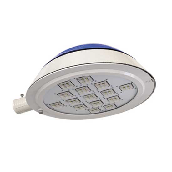 This LED street light features a semi-spherical aluminum housing with two-toned electro-static plastic spraying. The high-performance street light boasts superior lighting effects and a long lifespan. The modular structure guarantees easy maintenance and replacement.