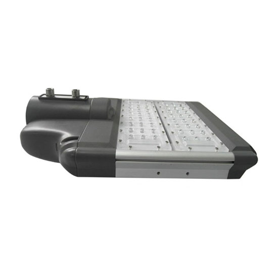 This is an LED street light with a gray finish. It offers even light distribution of up to 8,400 lumens for a wide area. It is an energy efficient choice.