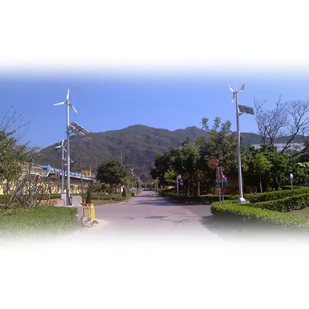 - Lighting pole with LED lamp head, wind generator and solar panel.