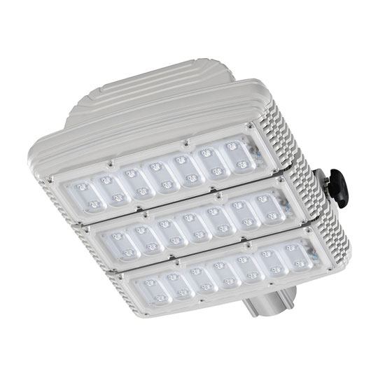 Displayed is an LED street light coming with a silvery finish. It offers comfortable illumination of up to 13,050 lumens. Made of top quality materials, this street light offers a long lifespan.