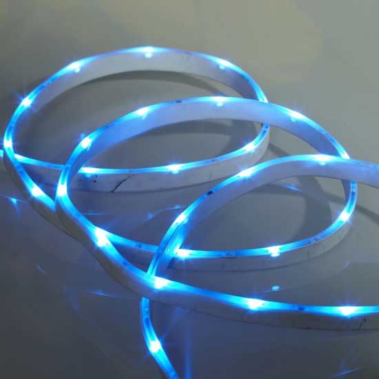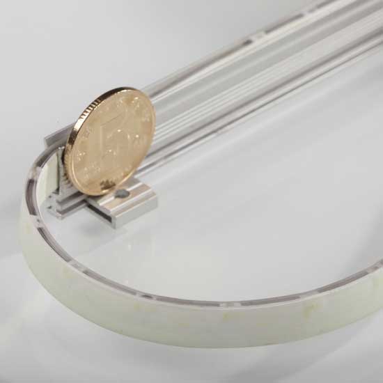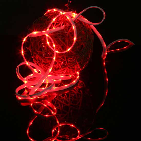Displayed is the thinnest side-emitting flexible light stripe in the series. This LED strip is excellent for outline decorations of furniture, frame decks of photographs and wall pictures. It is also ideal for embedding underground, wall grooves and gallery slots as instructional decorations.