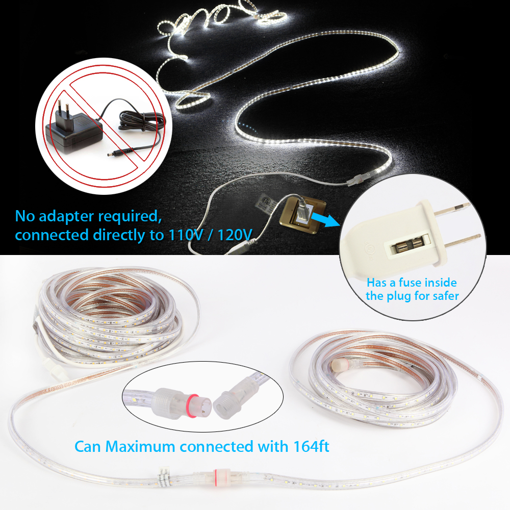 3. 110V Maximum connect with 50 meters / 165Ft strip light, 220V Maximum connect with 100 meters