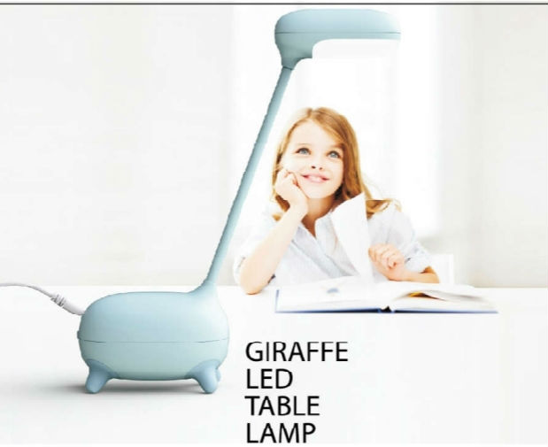 Featured here is a LED table light designed to resemble a giraffe. It has a long lamp neck and has four legs at the bottom for support. This LED table light is easy to position and offers bright and comfortable lighting.