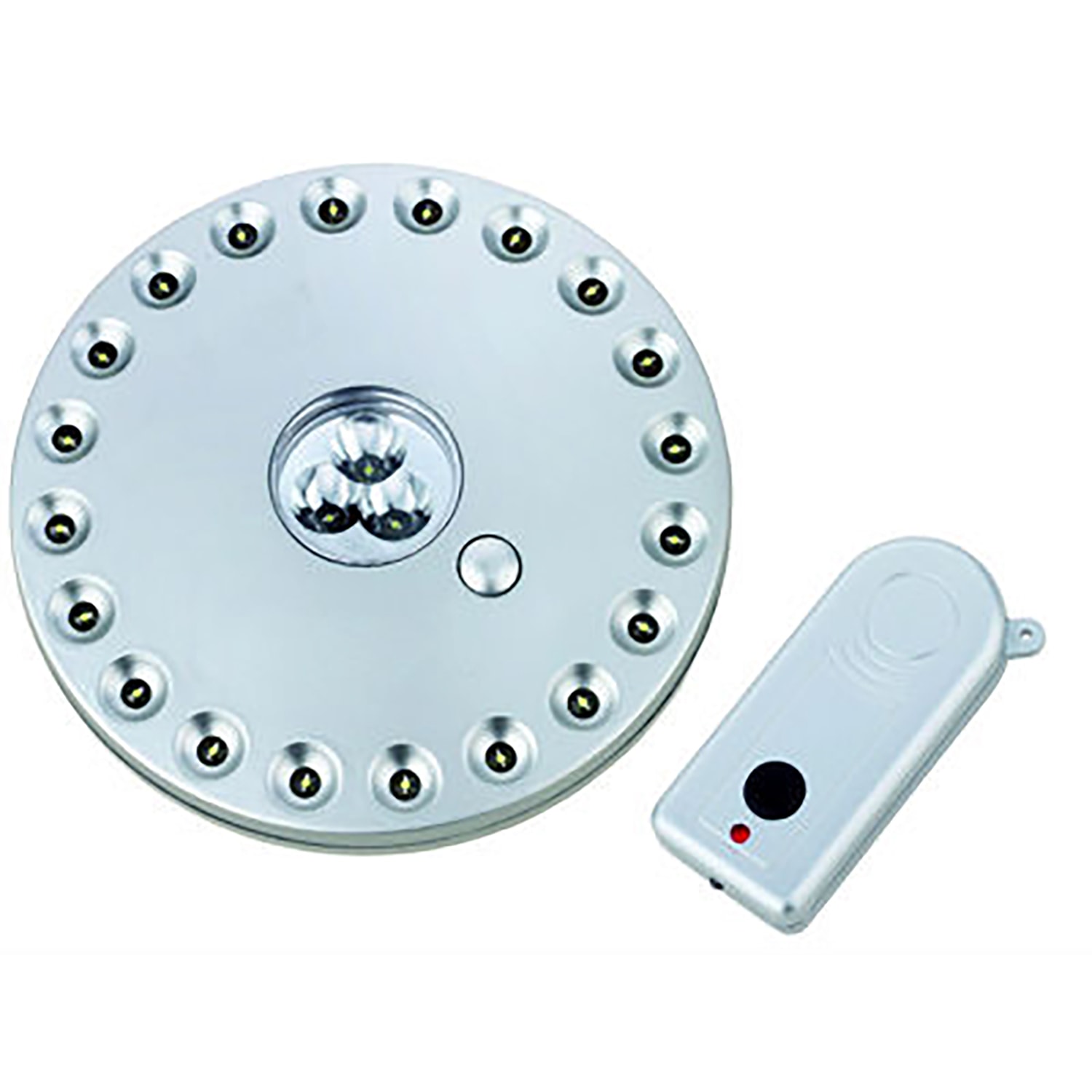 Enjoy a fun and safe camping experience with this round shaped UFO LED tent light. It is equipped with 23 LED chips and can offer 2 modes of brightness. This LED tent light has a hook and a magnetic base on the back and comes with a remote for easy control.