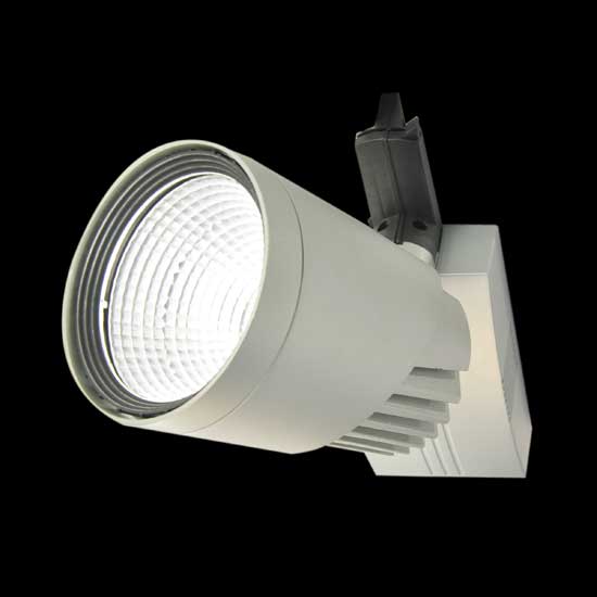 This modern LED track light features a cylindrical-shaped body in a white finish. The high-power track light boasts high luminous flux and excellent color temperature. It is an ideal lighting source for retail stores, advertisement boards, meeting rooms, etc.