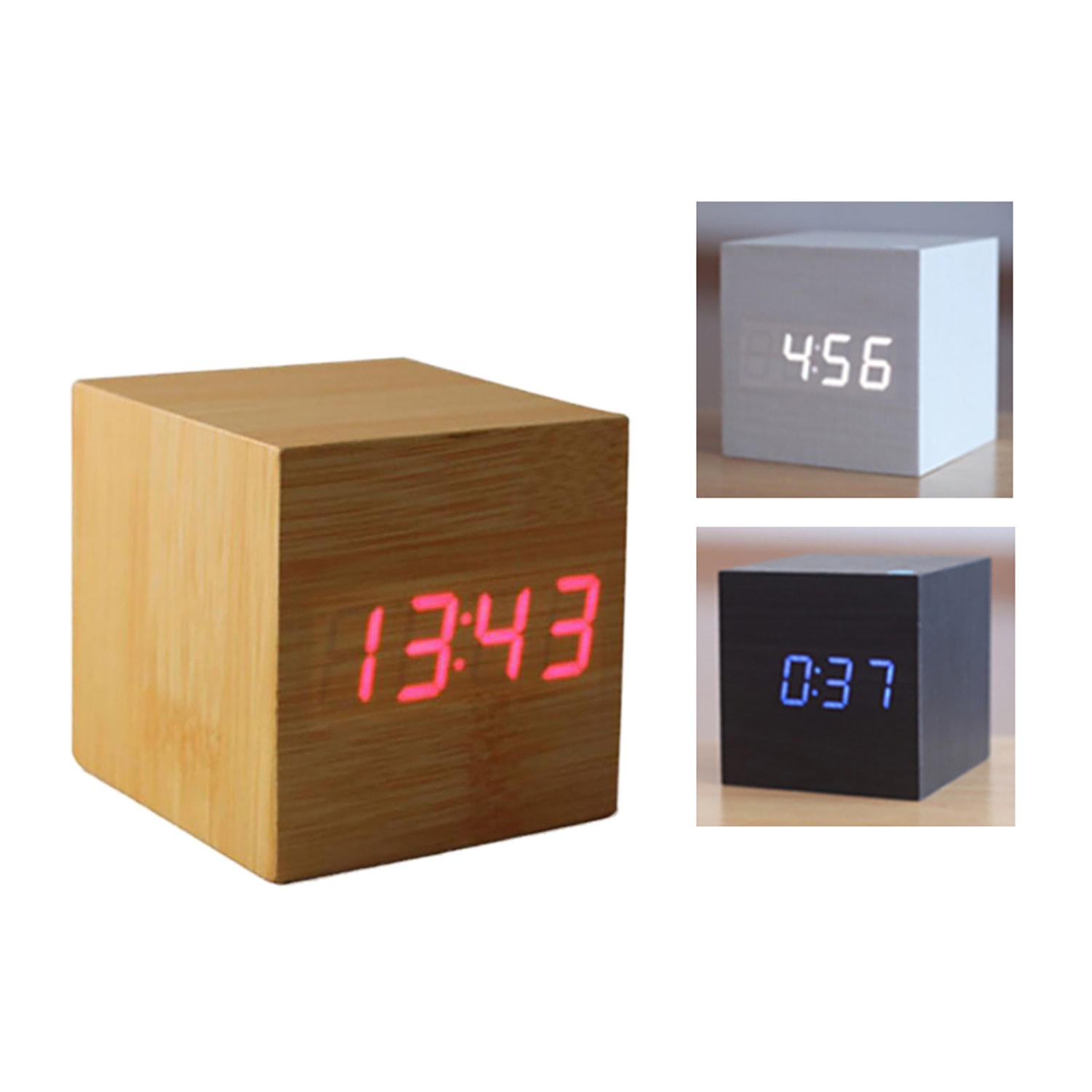 LED Voice Control Wooden Digital Alarm Clock includes the following features :