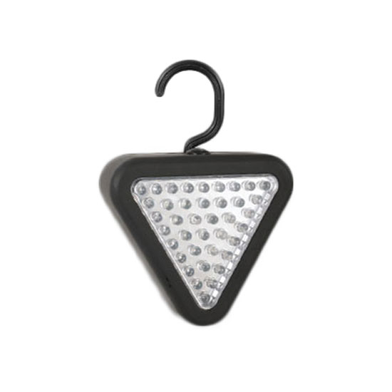 This is an LED work light that comes in a triangle shape. It is made of quality material for long-lasting durability. This top hook allows you to hang it easily.