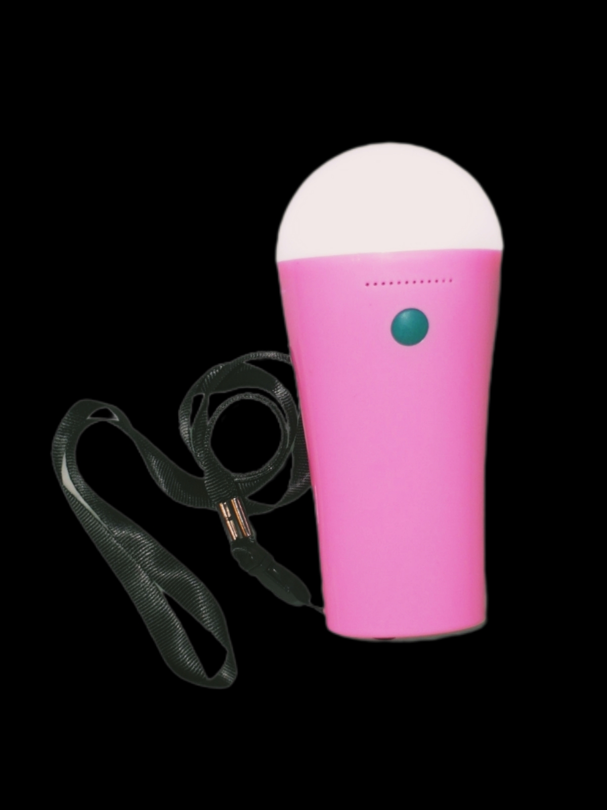 It is our design private moulding, and is powered by rechargeable battery and can be handhold or hanging.