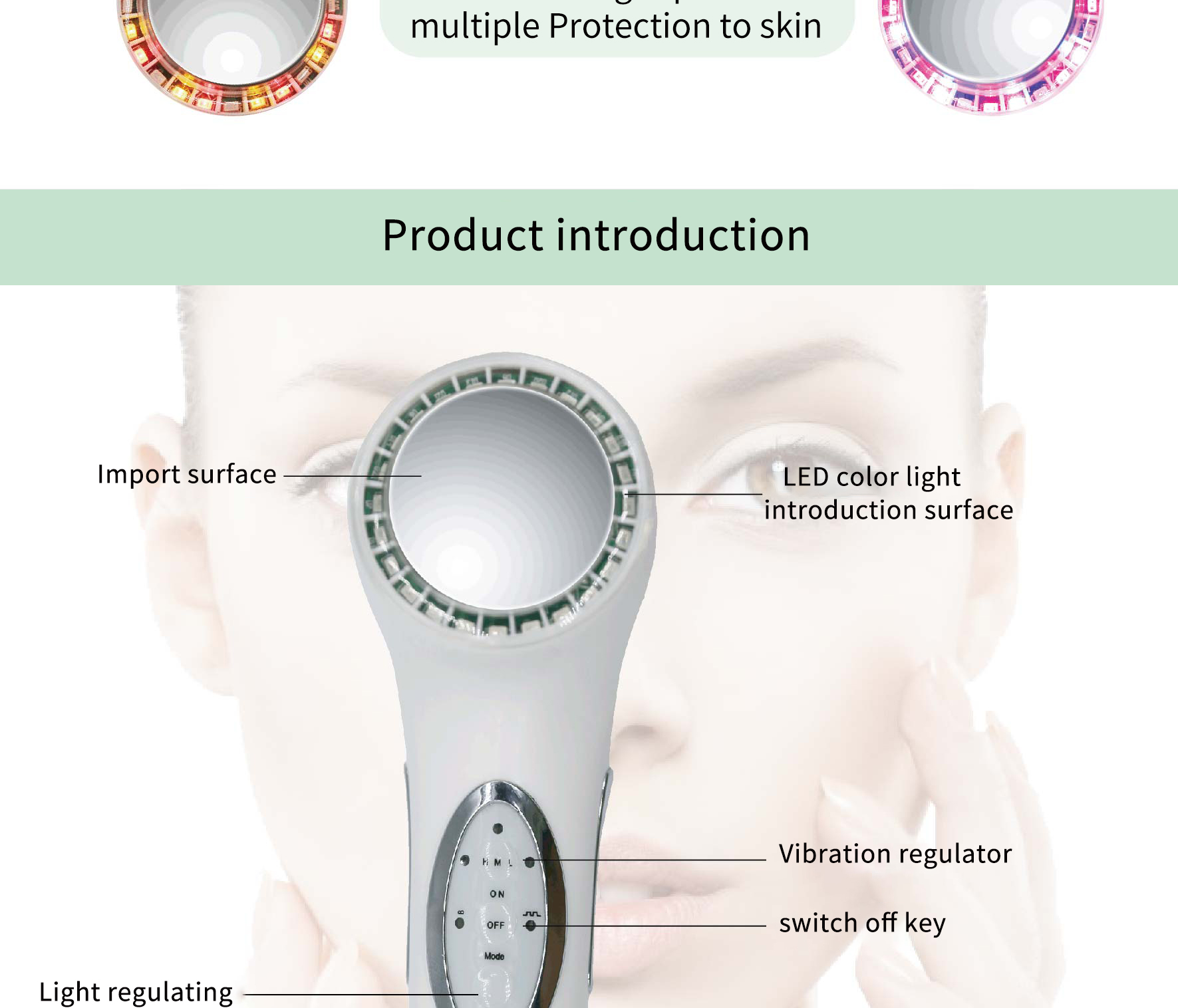 Red and blue beauty glow, clear and whiten the skin