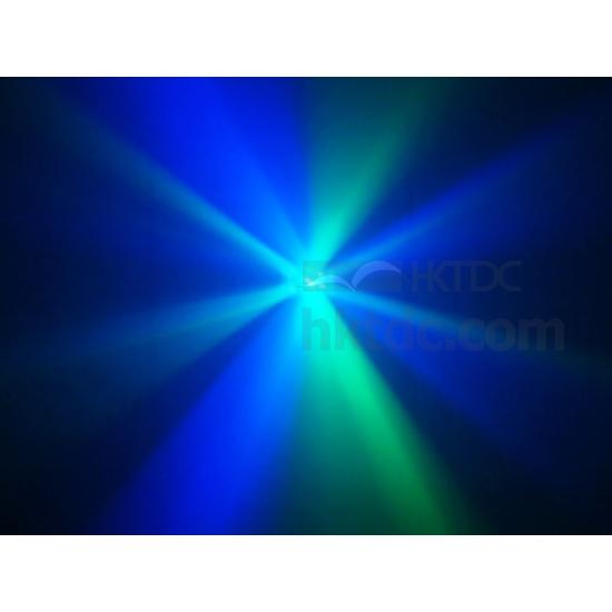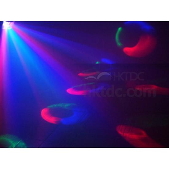 LED Thunderbolt is an eight-eye beam rotating light.Four channels,DMX controllable,automated display,sound activated,master/slave mode,built-in 5 flash speed,RGB static color via Dip switch control.Motor speed can be controlled via DMX.Sound active can be adjusted via sensitivity.