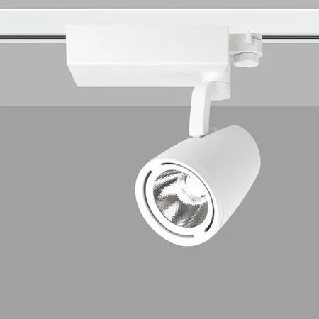 COB LED 30W Beam angle: 24 degree Luminous flux: 2472lm Color temperature(CCT): 3000/4000K CRI Ra: 80 Dimension: Dia.95xH225mm Die-casting and extrusion aluminium housing White powdercoated finishing With both optic lens and high purity aluminium reflector Track mounted Adjustable IP20