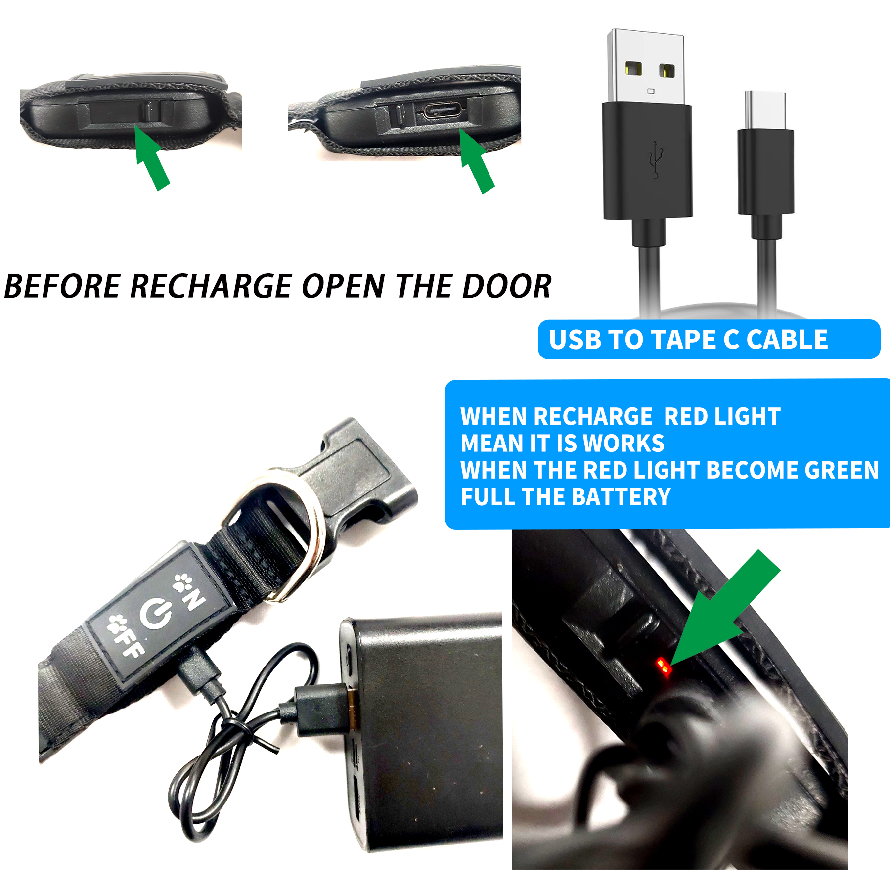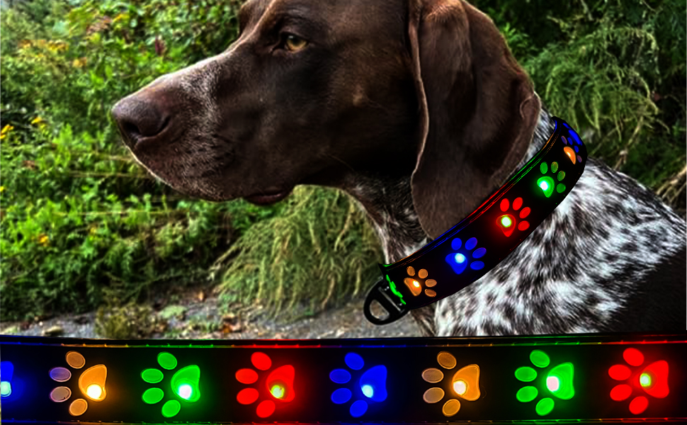 LIGHT UP DOG COLLAR usb C rechargeable 15modes change multicolor
