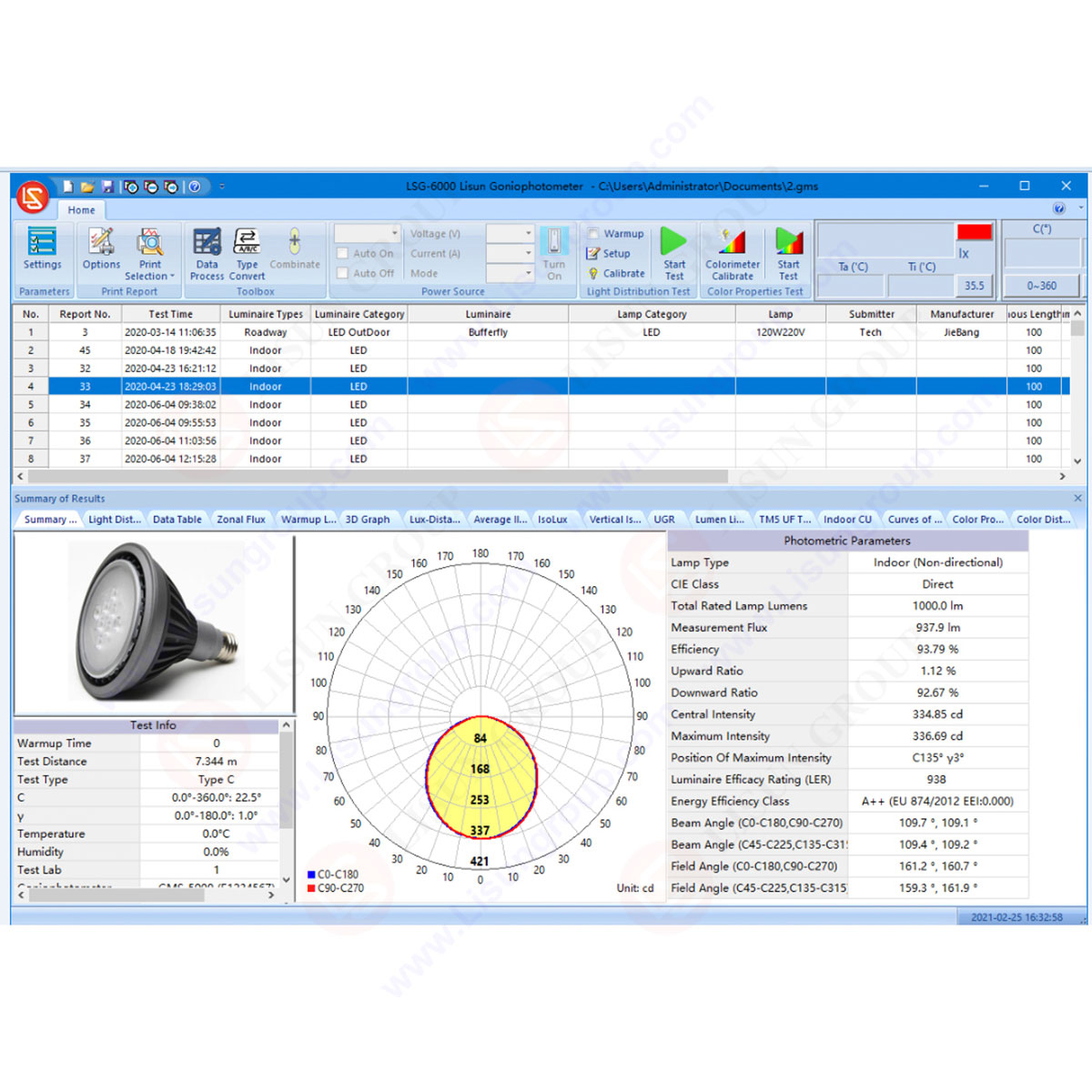 • The working principles are according to IESNA and CIE. The LSG-6000 completely meet the LM-79, LM-75, GB, EN and CIE121-1996 standards.