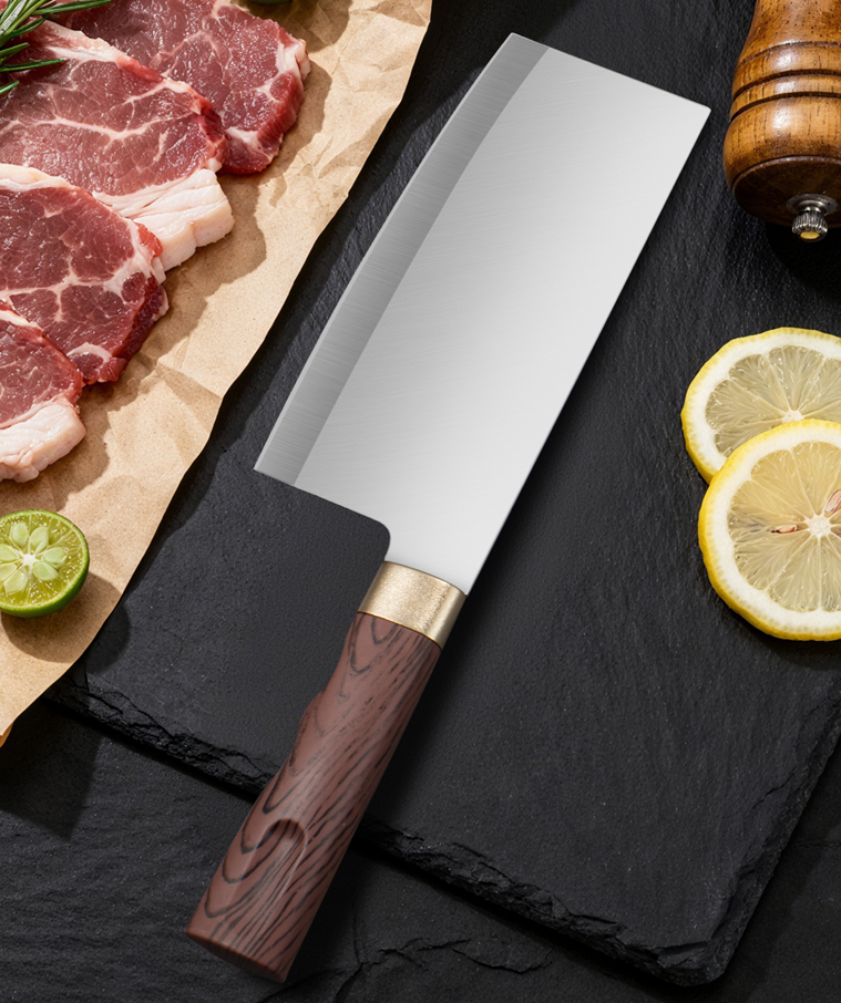 LONGDELI HOUSEHOLD BROWN SLICING KNIFE WITH GOLD TRIM - ULTRA-THIN & LIGHTWEIGHT LENGTH: 180MM | THICKNESS: 2.0MM MATERIAL: 3CR13 STAINLESS STEEL HANDLE: PP WOOD-GRAIN + ANTI-SLIP GROOVES