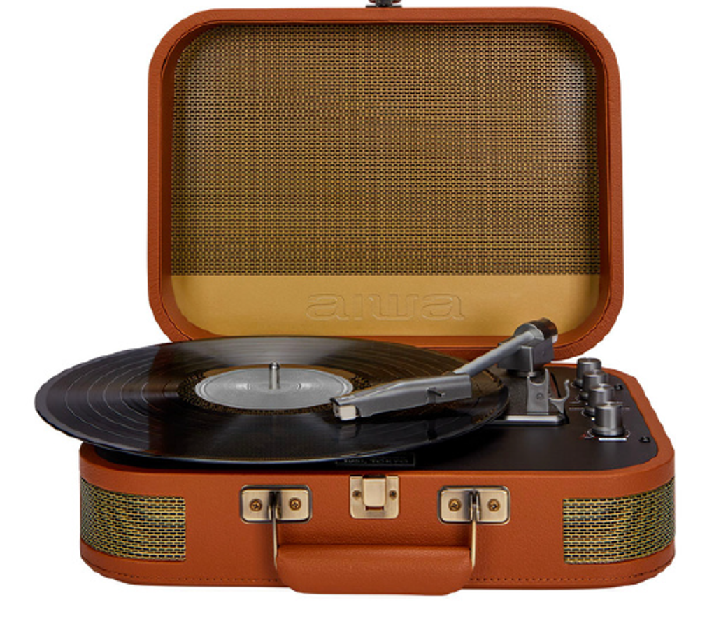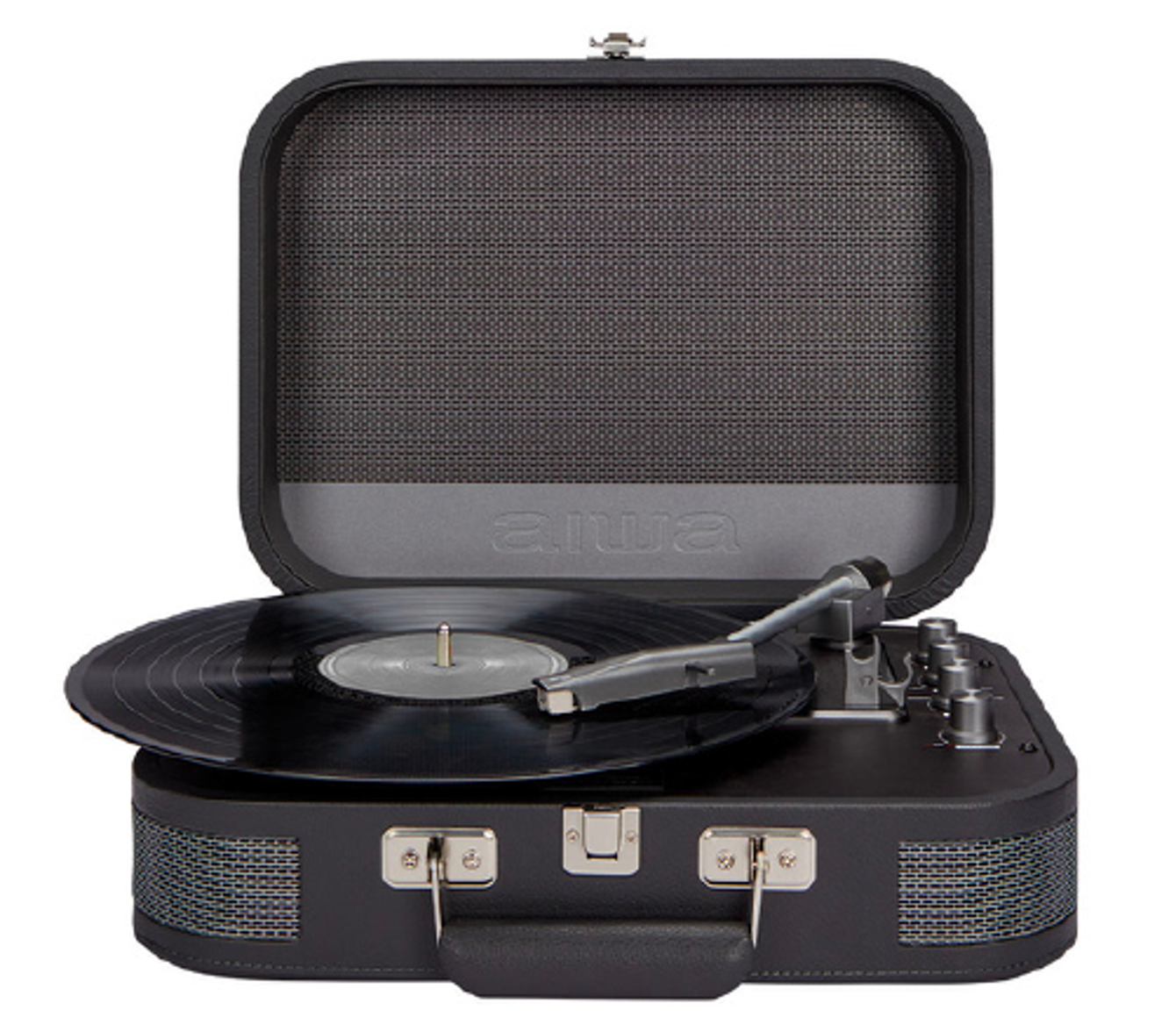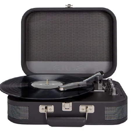 2-Speed phono playback (33.3/45 RPM) with pitch control, Audio Technica AT-3600L stylus, built-in stereo speakers (2.2Wx2 RMS), Bluetooth 5.0 for wireless audio (receiver/transmitter, 10m range), and USB for MP3 recording/playback (64GB support).