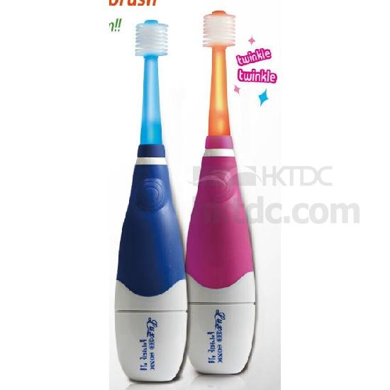 Playful battery operated sonic toothbrush with multi color flashing LED light.