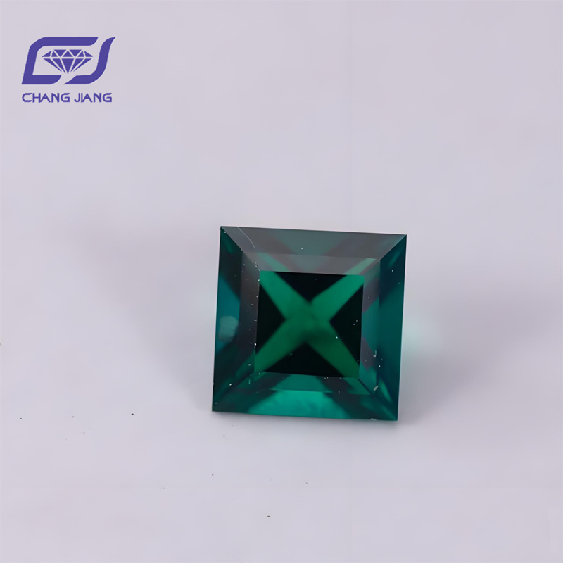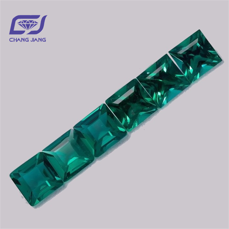 Lab Zambian Emerald Square shape Princess Cut Hydrothermal Gemstone