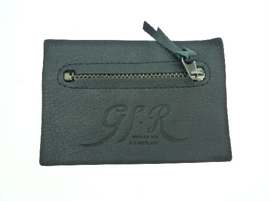 Leather garment label with metal.