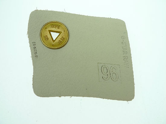Leather garment label with metal.