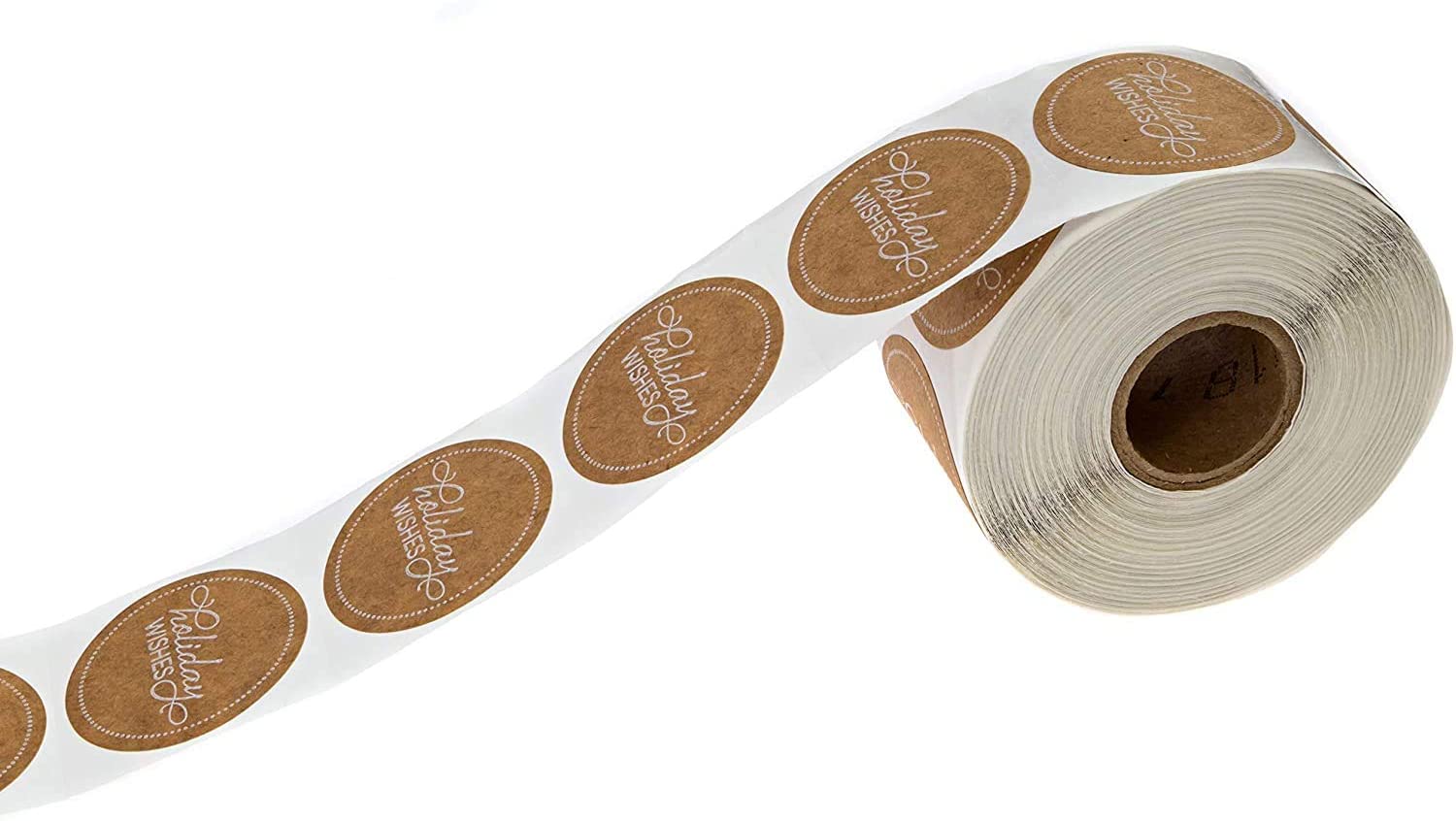 • Each Holiday Wishes label features a permanent adhesive that sticks to paper, plastic, cardboard, bags, fabric and glass.
