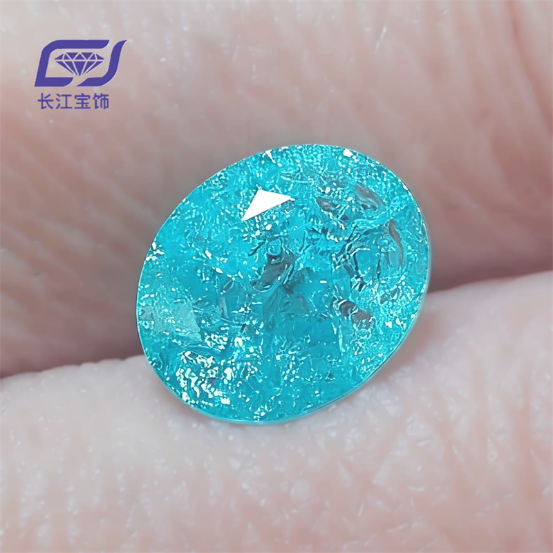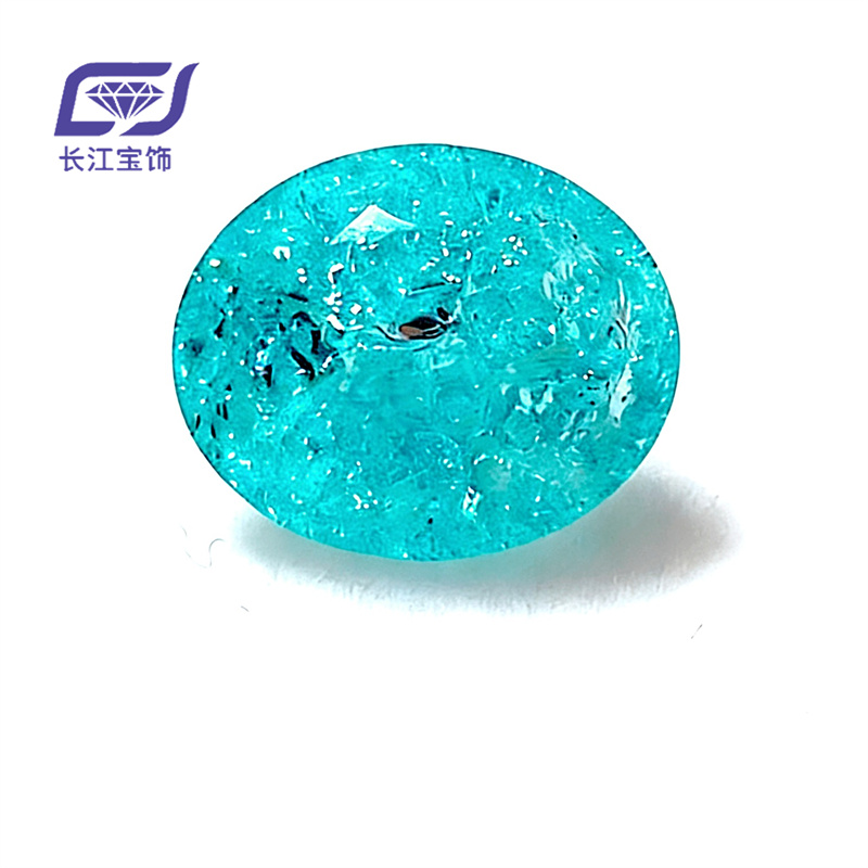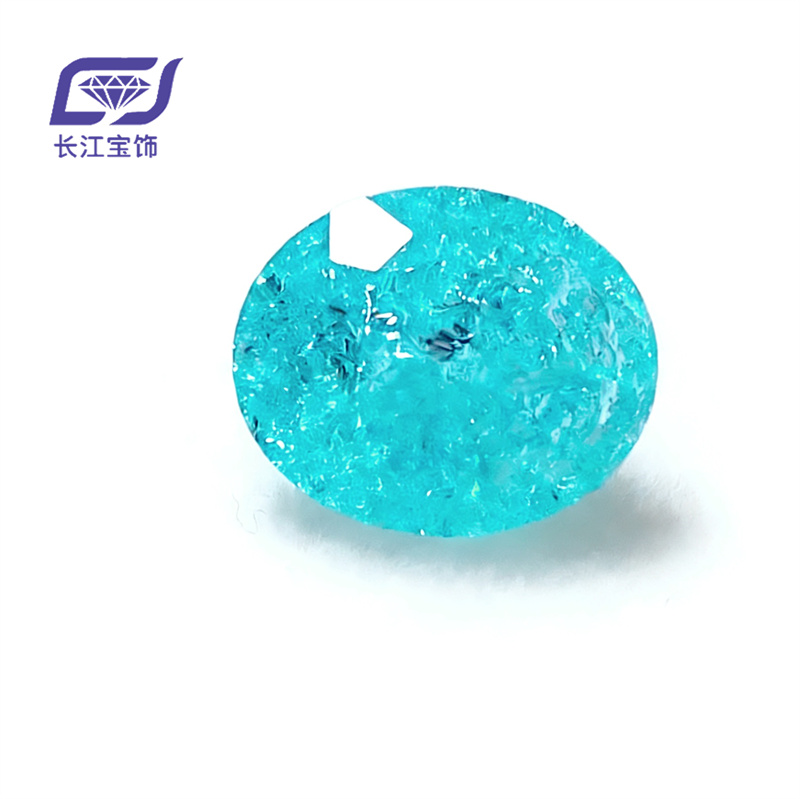 - Laboratory Paraiba Blue Stone with Ice Cracking Neon Blue Oval Shape Stone