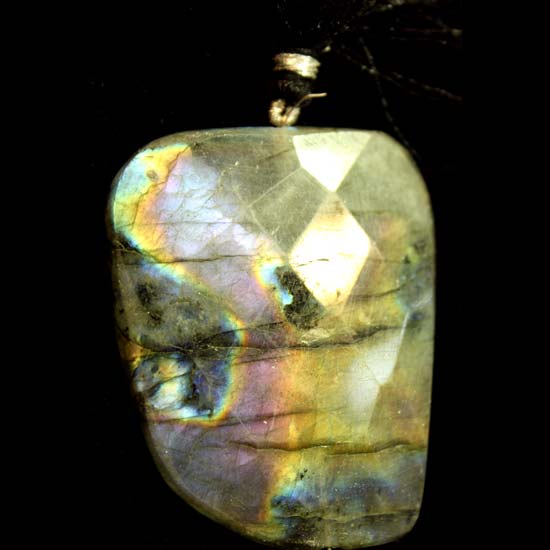 This is a piece of natural labradorite stone coming with exclusive mottles. The stone has undergone delicate craftsmanship for a smooth surface. Add a sense of nature to your casual look with this unique stone.