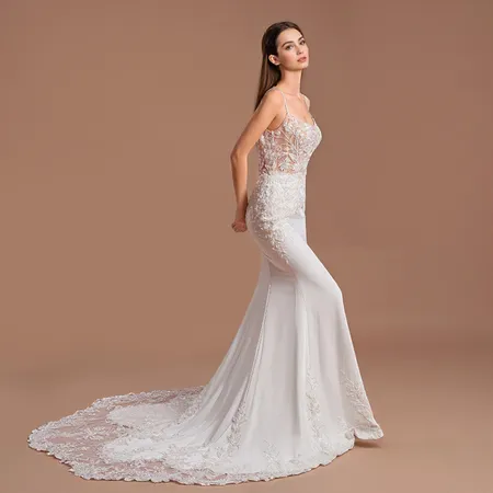 Lace Bodice Spaghetti Strap Mermaid Wedding Dress