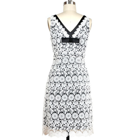 This lace dress comes with a sleeveless design and a deep V-neckline. It is finely made with great craftsmanship and delicate details for an attractive look. This charming dress is a great choice for fashionable ladies.