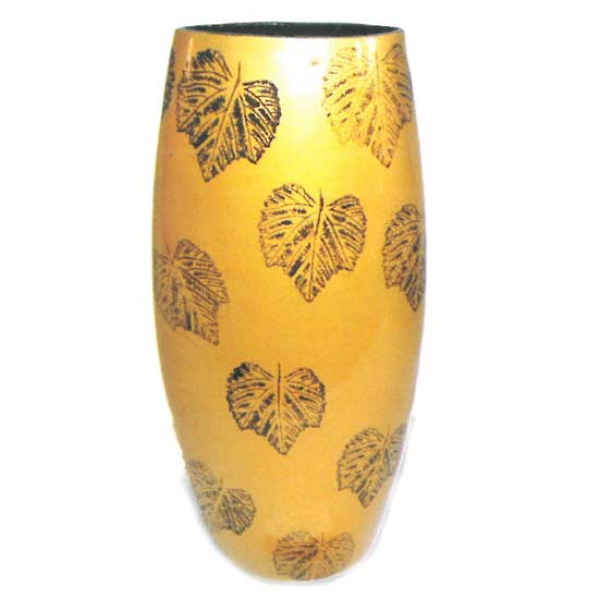This is a lacquer vase featuring a large-size mouth that can hold few bundles of flowers at the same time. The golden lacquer finish casts a touch of glamor over the entire piece. This lacquer vase is a good ornament to enhance your house in style.