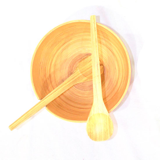 The elegant tableware set is completed by bowls and spoons in a matching design. The quality bamboo material gives each piece of tableware a reliable structure for long-time use, while the lacquer layer showcases a polished sheen. Dress up your dining table and serve your guests with this high-quality lacquered bamboo tableware set.