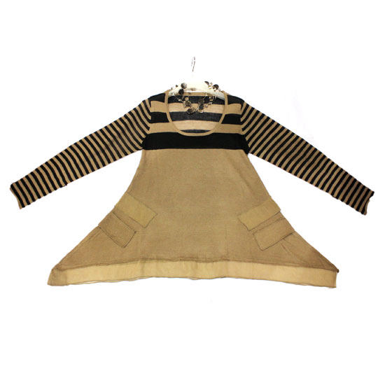 This fashionable blouse comes with striped long sleeves, a round neckline and four side pockets. The high quality acrylic and wool materials ensure wearing comfort and durability. This gorgeous blouse is a classic addition to ladies’ blouse collection.