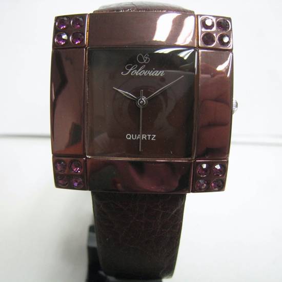 This fancy watch features a metallic square-shaped case matching with translucent crystals. The snakeskin-like leather band echoes with the glamorous design, while the numberless dial gives it a minimalist look to strike for a balance. It is great to honor someone special with this fashionable watch.