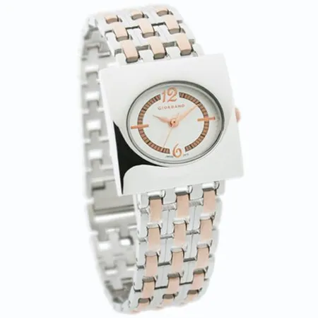 This sophisticated analog watch features a 10 ATM water resistance feature and a high-precision 3-hand Japanese quartz movement. A stylish square-shaped bezel merges perfectly with the round dial to create a beautiful contemporary touch. On the dial are luminous rose-tone gold markers and easy-to-read Arabic numerals at the 12 o'clock and 6 o'clock.