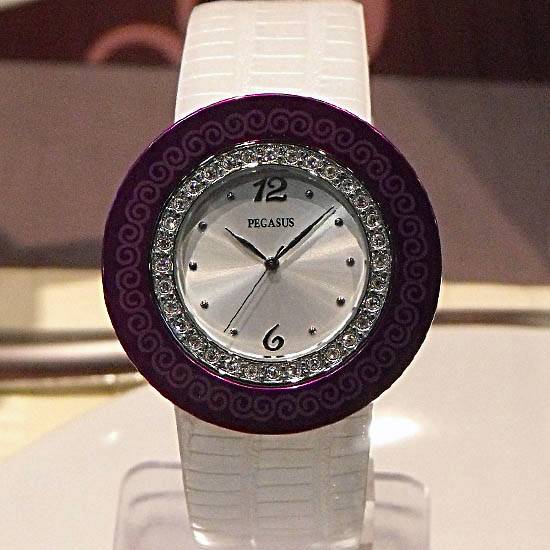 This ladies' watch features a circular stainless steel case with genuine leather straps. It boasts a MOP dial with slender hands and numberless hour markers. The shimmering Swarovski stones showcase a touch of elegance, making this watch a great addition to the wardrobe of ladies.