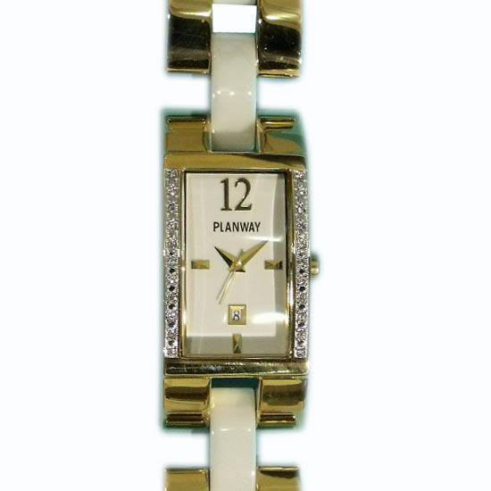 Featured is an analog watch with a stainless steel construction. It boasts a rectangular bezel with quarter hour markers, thin hands and a date display. The glittering stones add a sense of elegance, making this watch a great accessory for grand occasions.