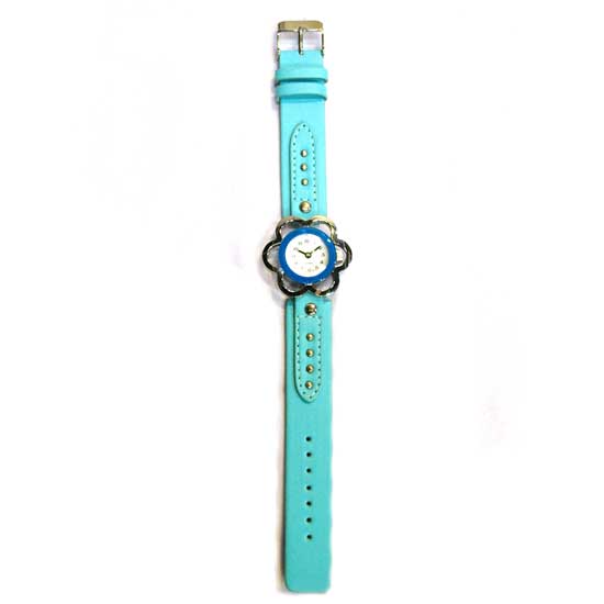 Displayed here is a ladies' analog watch with a genuine leather strap. The floral case delivers a touch of elegance. Add this chic timepiece to your watch collection.