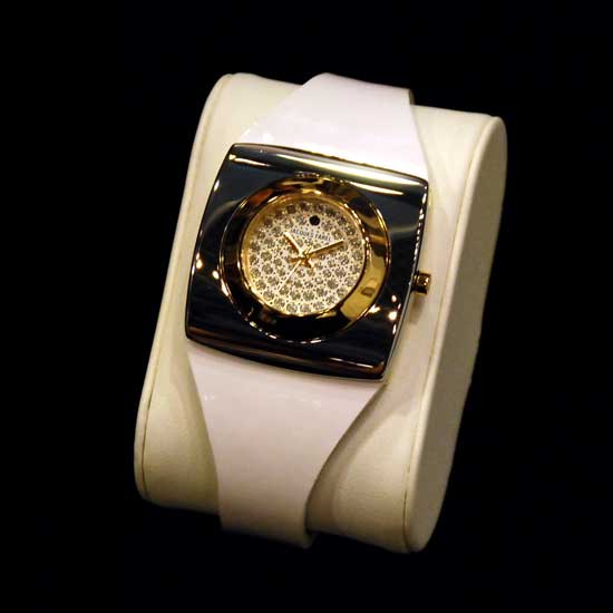 This timepiece looks ultra-enchanting with its elegant appearance. The square brass-made case boasts a round dial with a golden bezel. The white straps are made of leather for added luxury. This stunning timepiece is a grand addition to your attire.