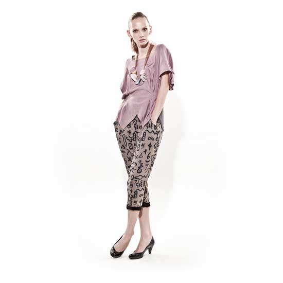 Featured is a ladies' apparel set made for a casual look. The blouse features a square neckline and a jigsaw bottom. The pair of leggings boasts fancy prints of the English alphabet and fun symbols for a playful touch. This apparel set is sure to deliver lasting comfort all day long.