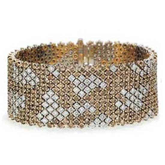 Unlike ordinary metal-made bangles, this cute bangle features many small shimmering stones chaining up together to form the band. The colored stones are orderly arranged in rows for a splendid look. Spice up your jewelry collection with this nice bangle.