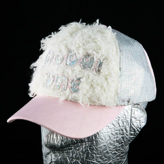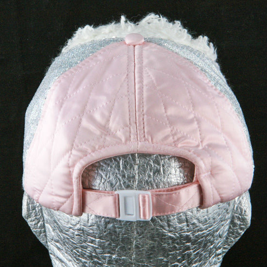 • Quilted stitch detail on pink brim and back panel.