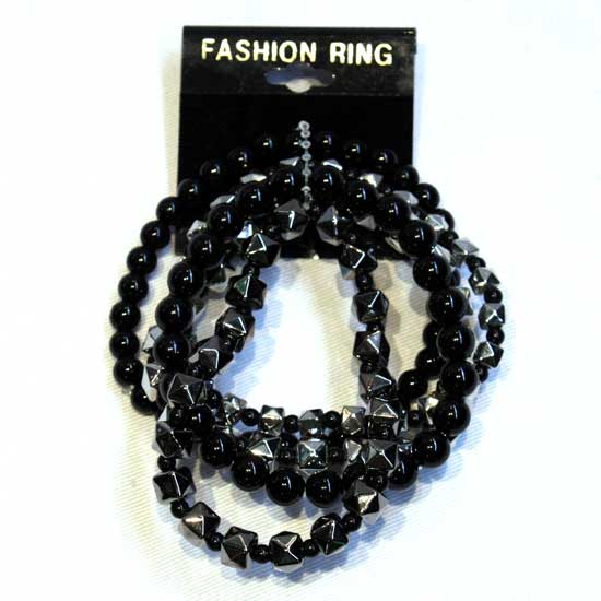 Linking up beads together forms the bracelets featured here. The beads come in different shapes, such as sphere and faceted square. The smooth and glossy surfaces of the beads fully reveal the outstanding polishing skills. The string used for these bracelets has high elasticity, allowing the wearer to put on them easily.