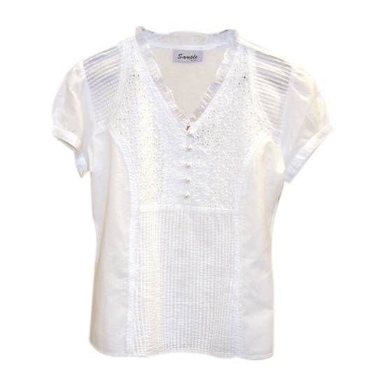 • This blouse has a v shaped neck with tiny ruffle detail around the neckline.