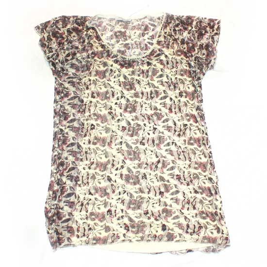 The featured ladies' blouse shows exotic and stylish patterns all over. The cap-sleeve design adds a touch of style. This trendy ladies' blouse makes a great addition to your summer wardrobe.