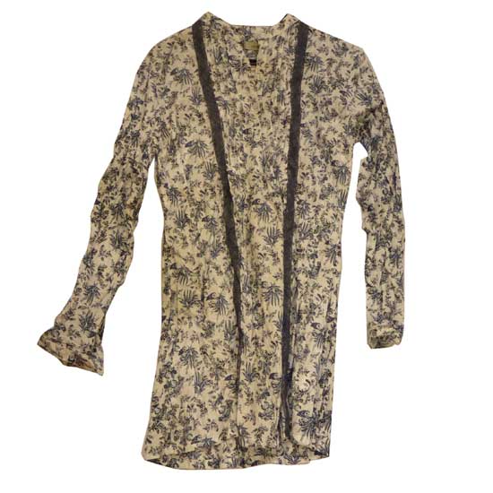 Available is a ladies' blouse made of 100% cotton. This piece features a convenient pullover design. It is characterized by elaborate floral motifs all over.