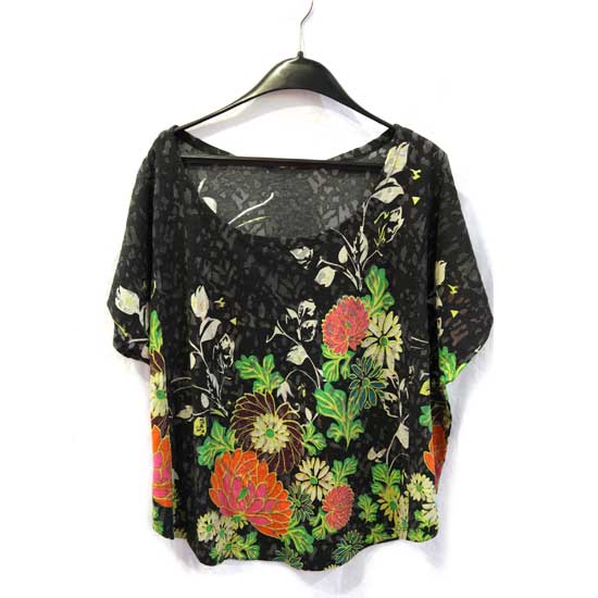 This is a ladies' blouse featuring floral burnout discharge prints. Made of cotton and polyester, this blouse is comfortable and easy to take care of. This beautiful ladies' blouse is great for workplace or the weekend.