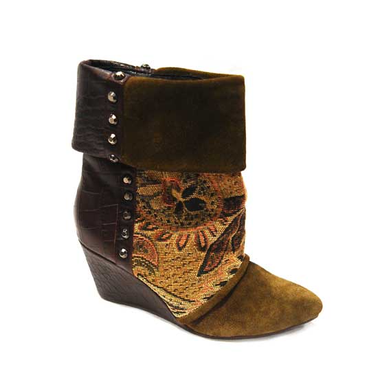This is a pair of ladies' boots that is made of extremely soft and comfortable material. The embroidered details in bright colors add a touch of style to the whole piece. This pair of wedge-heel boots is an ideal choice for winter wear.
