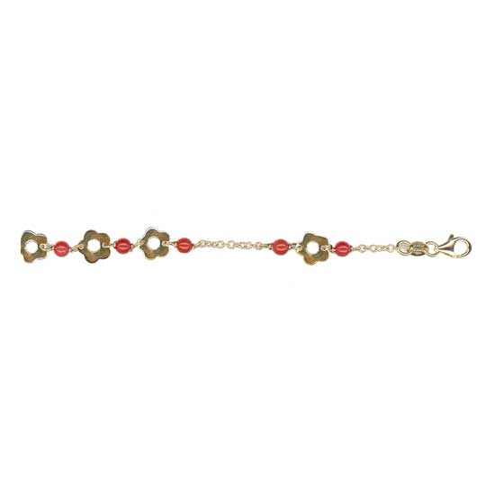 This stunning fancy chain features floral charms separated by lustrous red beads. Towards the end comes a lobster clasp. The impressive chain shines in vitality.