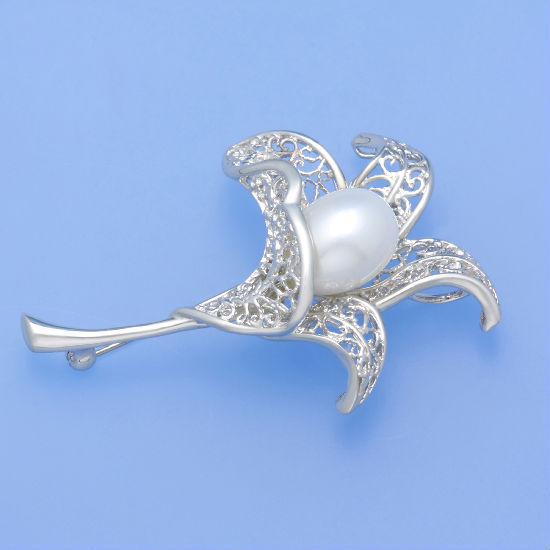The pictured brooch comes with the appearance of a branch of flower. Embedded with freshwater pearl and CZ stone accents, this brooch delivers a high-end style. The pearl is placed in the core as bud and is graced with silvery leaves plated with rhodium in a hollow-out design. Made with high quality perals and cubic zirconia, this brooch promises long-lasting beauty and durability.
