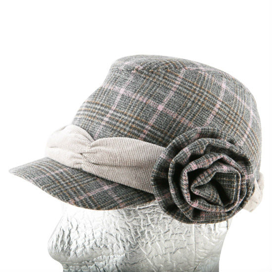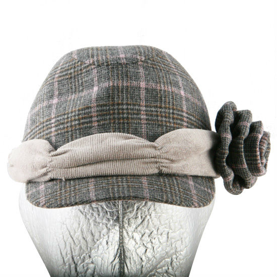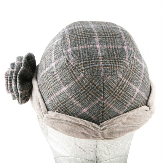 Stay fashionable and warm with this classic checked cap. Wrapped with a cream-shaded side band with extra sweet flair offered by the fabric handcrafted rosette, this wool-blended hat delivers a softy touch with the velour lining while shielding your head shielded from cold weather elegantly.
