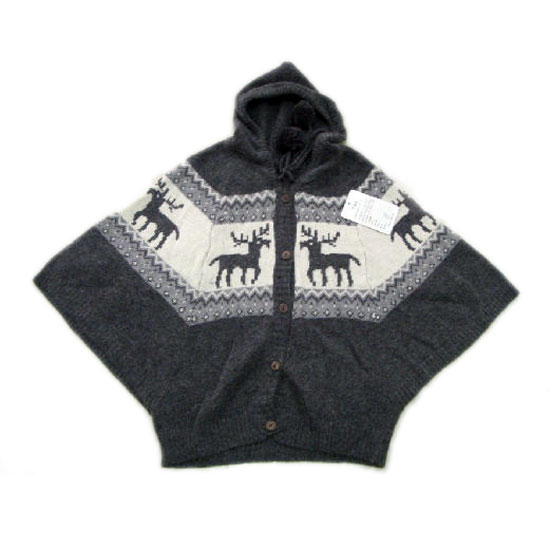 Displayed is a cape with a stylish, winter-themed design. The deer patterns add a sweet touch of romance. The quality construction of viscose, cotton and others keeps you warm and comfortable.